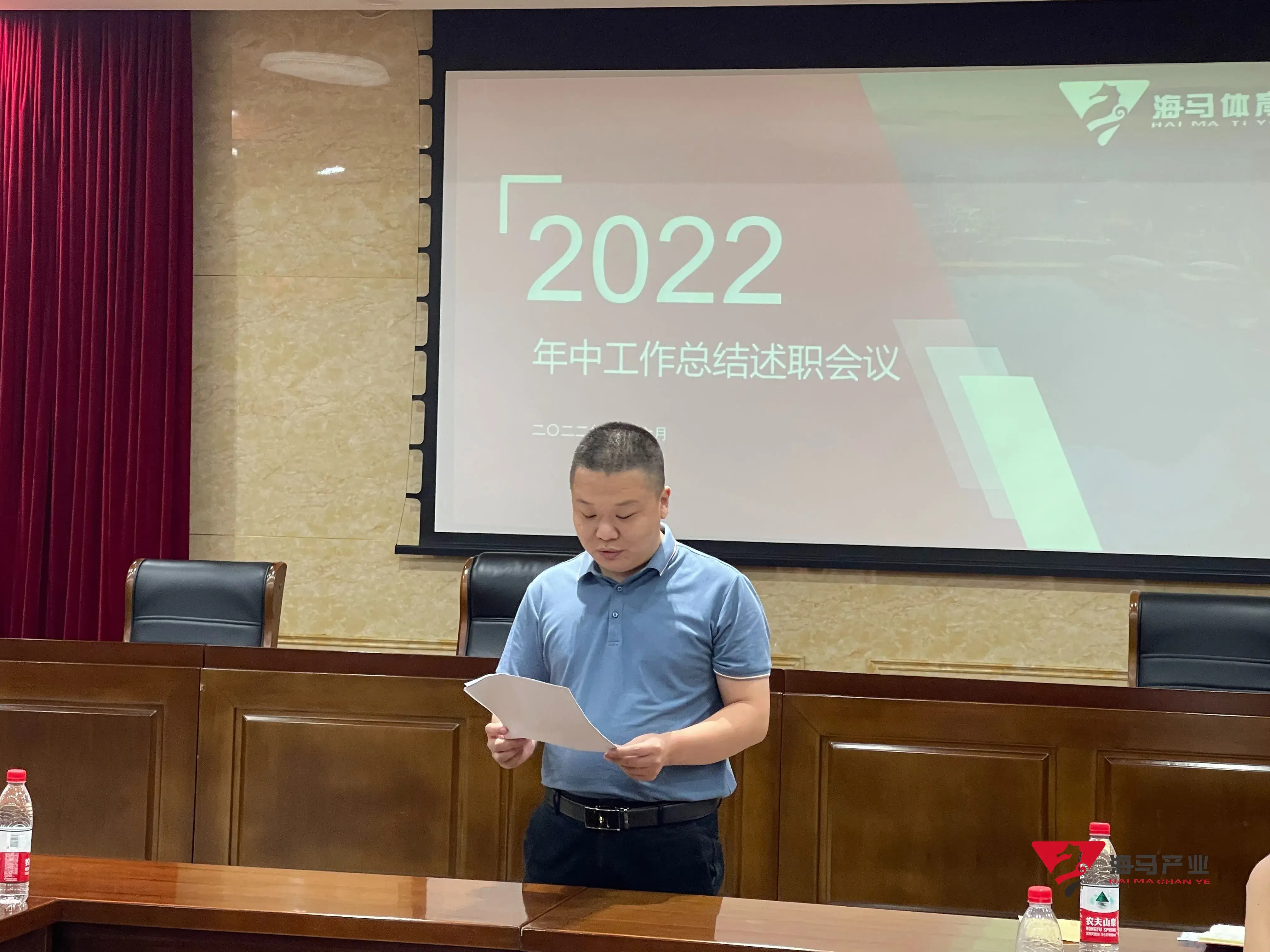 2022年6月29日下午,星欧娱乐文化产业集团在山东省体育中心二楼会议室召开年中工作总结述职会议,会议对上半年工作成果进行了总结汇报,并就下半年重点工作进行部署。总经理王海民出席了本次会议。会议由综合管理部负责人王永健主持。